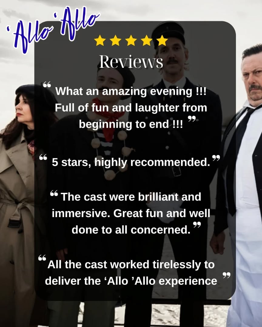 "This is a great company who throw themselves fully into their characters. They produce events which are gripping and fun. They make for a first class evening of entertainment."